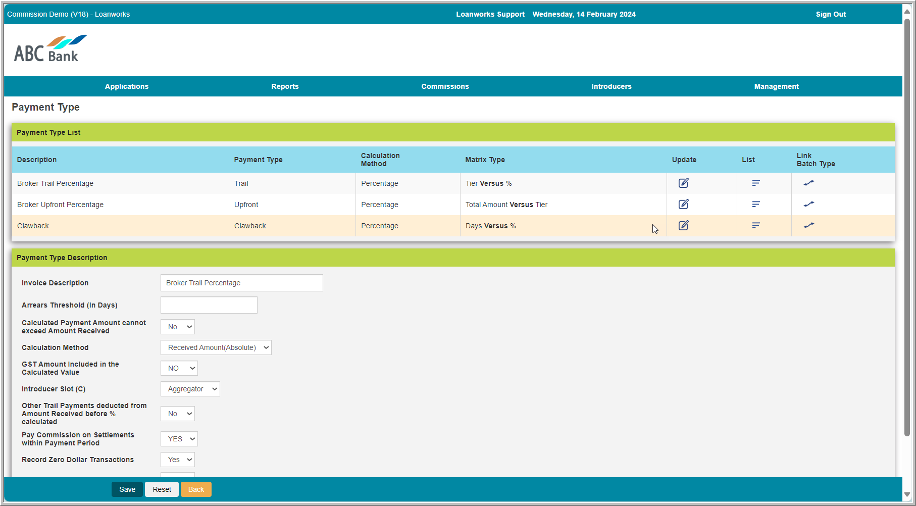 The Loanworks commissions system supports various out-of-the-box commission models and rules, including: